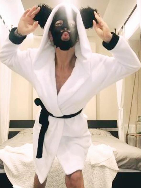 Eliz Sakuçoğlu, panda kostümüyle çektirdiği fotoğrafını sosyal medya hesabından paylaştı.