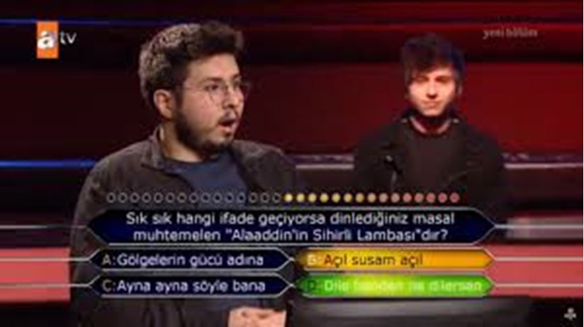 Kim Milyoner Olmak İster'in yayınlanan son bölümünde geceye "Sık sık hangi ifade geçiyorsa dinlediğiniz masal muhtemelen Alaaddin'in Sihirli Lambasıdır" sorusunun sorulduğu Hakan İşlek damga vurdu.