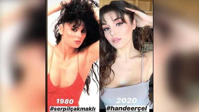 Oyuncu Hande Erçel, Instagram'da paylaştığı fotoğrafla Yeşilçam oyuncusu Serpil Çakmaklı'ya benzetildi.