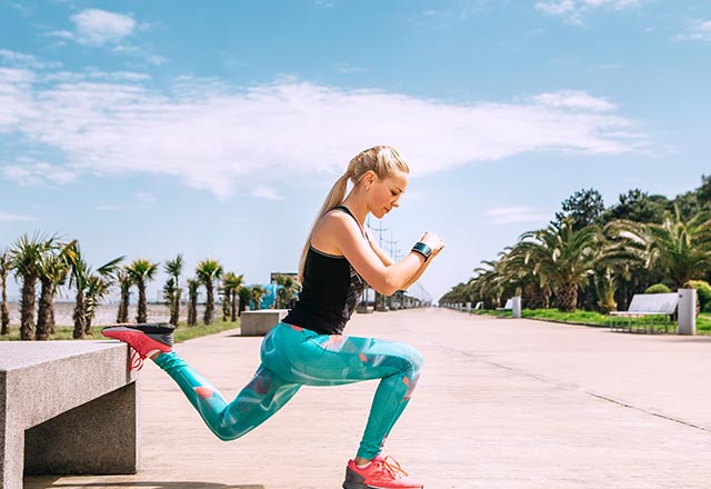 Sağ ayağınızı step tahtasına ya da banka koyun, ellerinizi kalçanıza yerleştirin. Sağ bacağınızla kendinizi yukarı itin ve bankın üzerinde dik durun. Kalçanızı sıkın, sol bacağınızı belinize kavis vermeden arkaya itin, kaldırabildiğiniz kadar yukarı kaldırın. Hareketi tersten yaparak başlangıç pozisyonuna dönün. Bu, bir tekrar eder. Sol bacağınızla tekrarlayın. Yön değiştirerek 12-15 tekrar yapın.