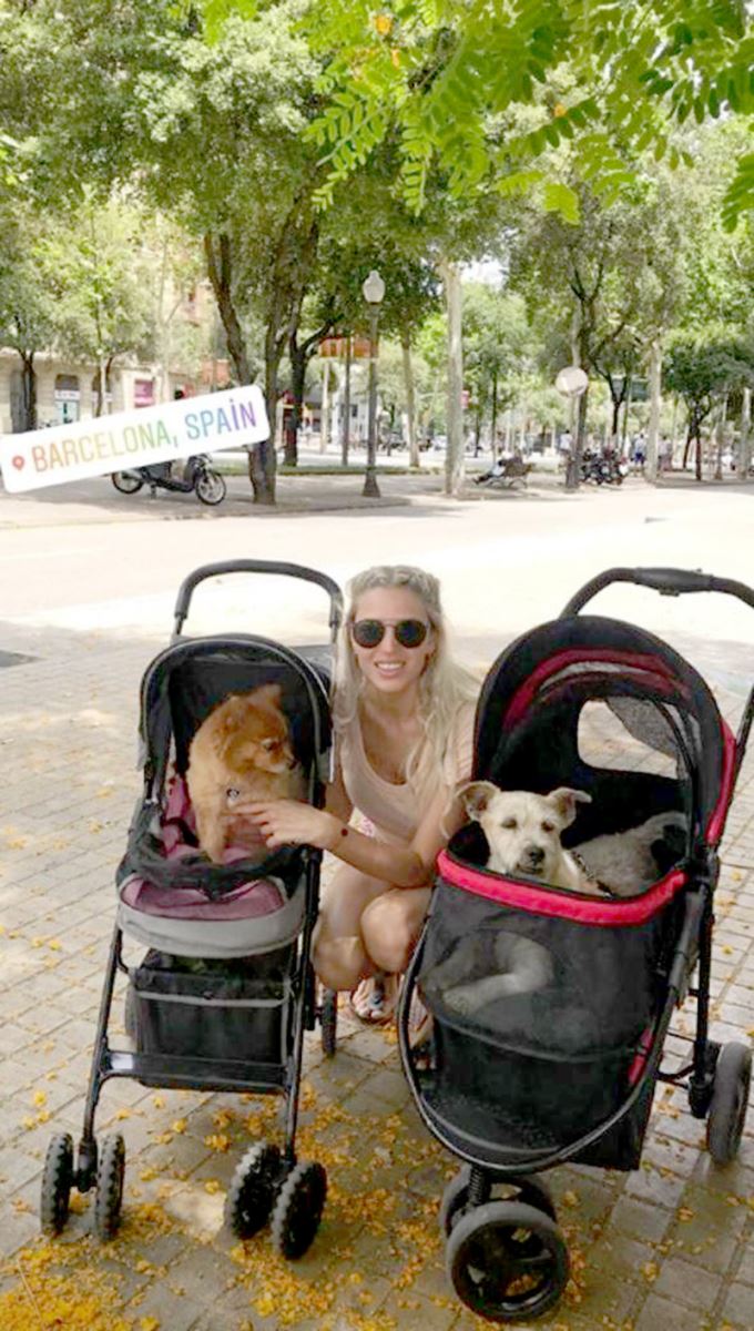 Gittiği yerleri sosyal medyadan paylaşan Öztunç’un son fotoğrafı olay oldu. Köpeği ‘Gina’yı bebek arabasına bindirip gezdiren güzel oyuncu o anların fotoğrafını paylaştı.