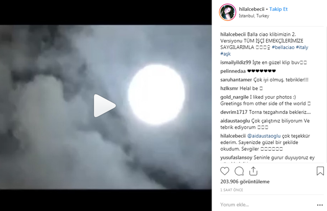 Hilal Cebeci, Çav Bella'ya tekrar klip çekti