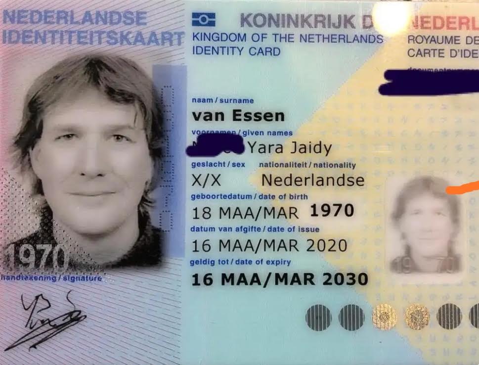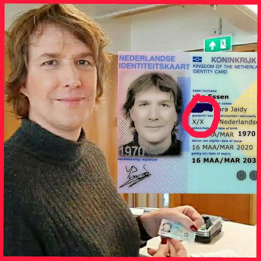 Hollanda’da devlet, Yara Jaidy Van Essen isimli 50 yaşında bir şahısa, cinsiyet bölümünde ne ‘Erkek’, ne de ‘Kadın’ yazan kimlik kartı verdi. Van essen’in kimliğinin cinsiyet bölümünde sadece ‘X’ harfi bulunuyor.