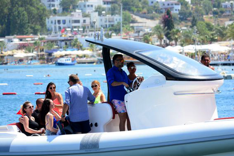Tekneden inmiş, eşi ile yemeğe gidiyordu. Görenler dönüp dönüp baktı, gözlerini alamadı.
