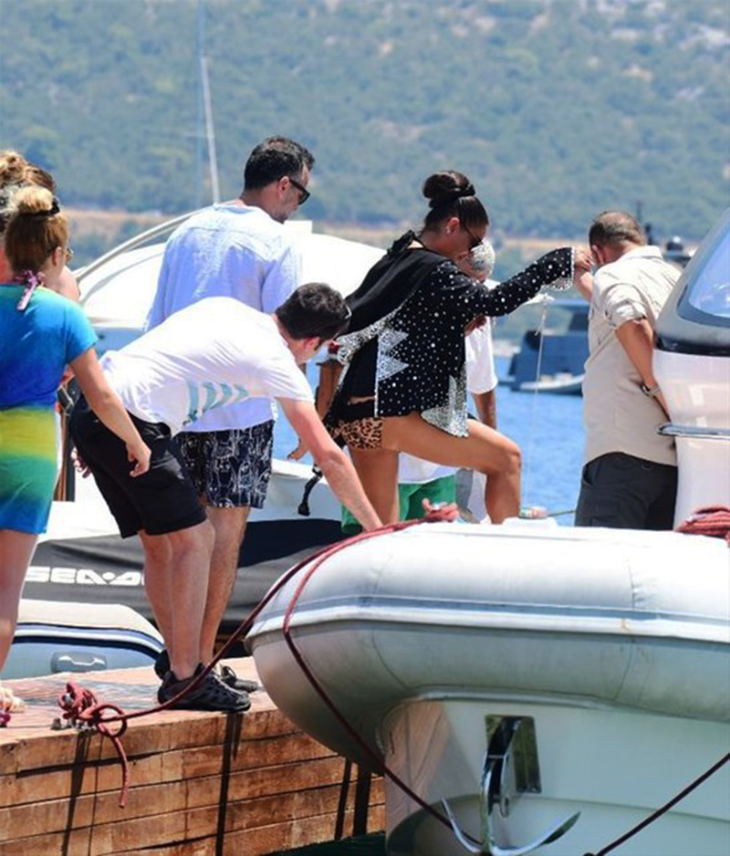 Sıra dışı tarzıyla her zaman ilgi odağı olmayı başaran sosyetik isim önceki gün de Türkübükü’nde objektife takıldı. Önü açık şeffaf topuklu bootie ve leopar desenli bikinisiyle dikkat çeken Yalçın, eşiyle el ele yürüyüş yaptıktan sonra arkadaşlarıyla birlikte bir zodyak bota bindi.