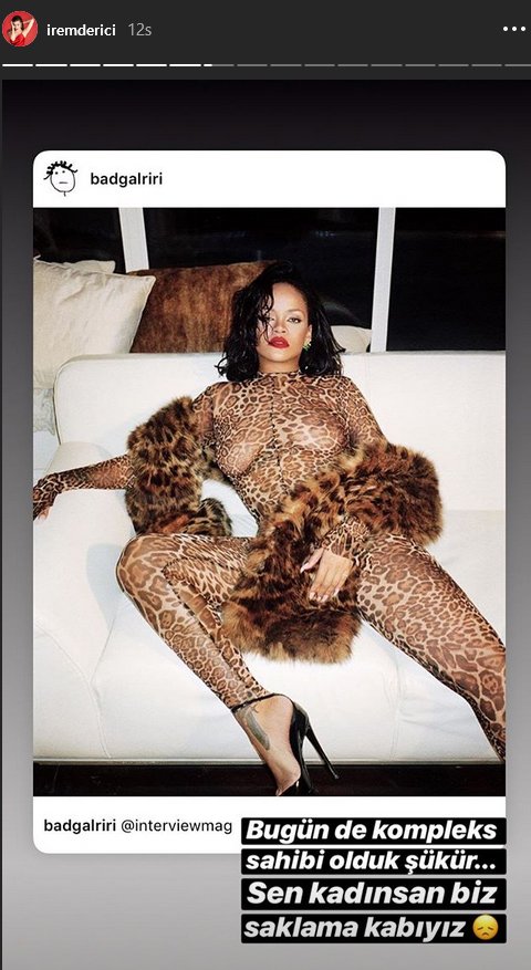 Şarkıcı İrem Derici sosyal medya hesabından meslektaşı Rihanna'nın bir fotoğrafını paylaştı ve yaptığı yorumla kendine has tarzını gözler önüne serdi.