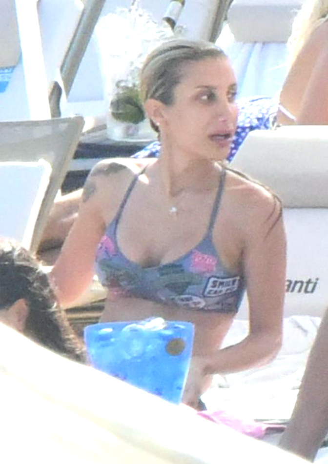 İlerleyen saatlerde denize giren şarkıcı, yarım saat yüzdükten sonra tekrar şezlongdaki arkadaşının yanına uzanıp güneşlenmeye devam etti.