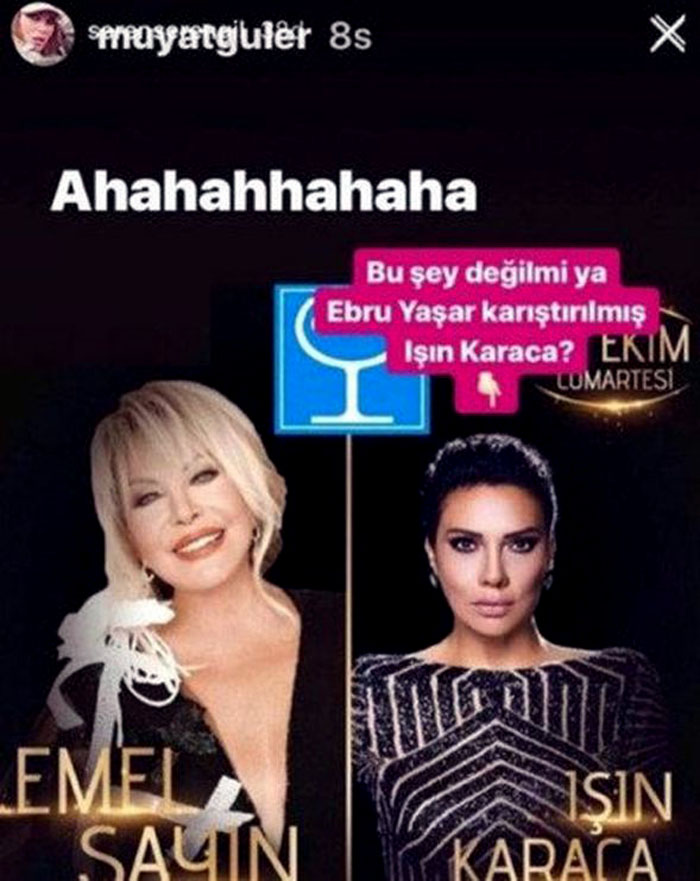 Seren Serengil; Işın Karaca ve Emel Sayın'ın konser afişini paylaşarak Işın Karaca'yı şarkıcı Ebru Yaşar'a benzetti. Bu durum ikilinin arasında gerginliğe neden oldu.