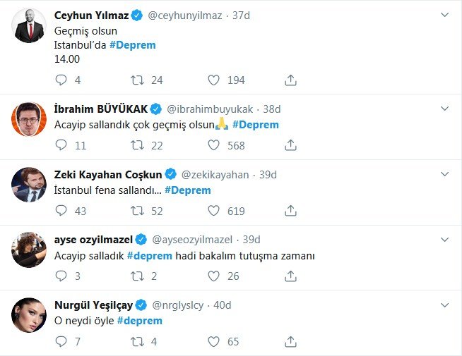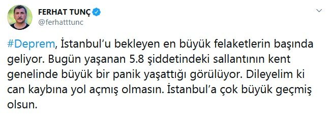 İstanbul Silivri’de 13.59’da gerçekleşen 5.8 şiddetindeki deprem ünlü isimleri de korkuttu. Ünlüler Twitter’dan geçmiş olsun dileklerini iletirken, deprem ile ilgili de uyarılarda bulundu.