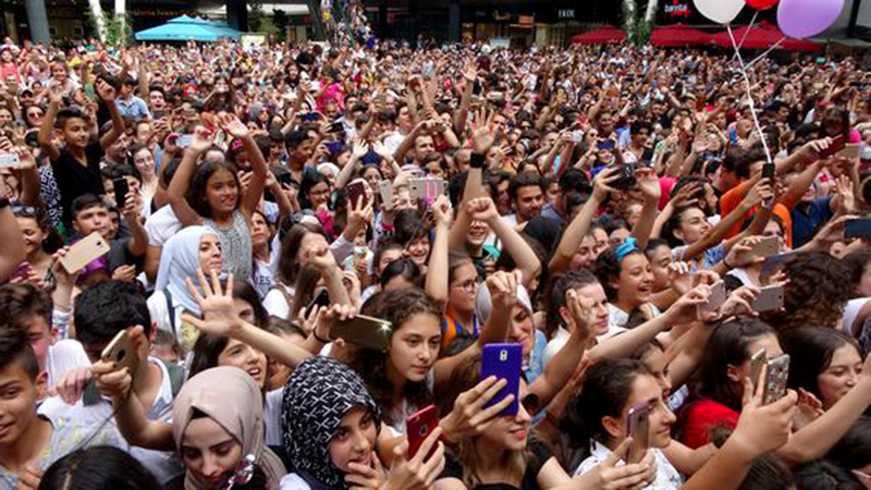 Ücretsiz konser nedeniyle alışveriş merkezinde izdiham yaşandı. Konser için zemin katta ayrılan alan tamamen dolarken, konseri izlemek isteyenler birinci kata yöneldi.