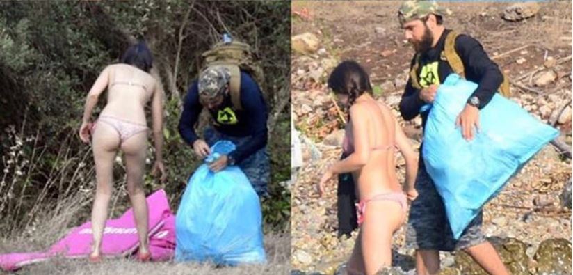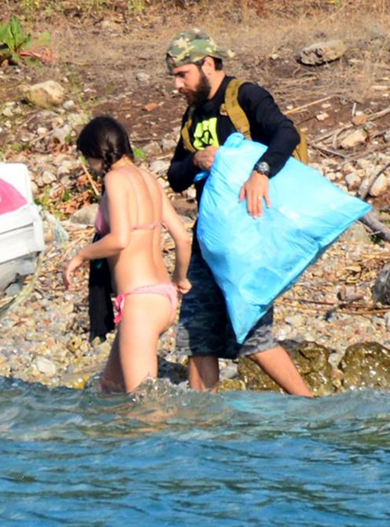 Ünlü çift, koydan ayrılmadan önce de çevre temizliği yapıp ortalığa saçılmış çöpleri topladı.