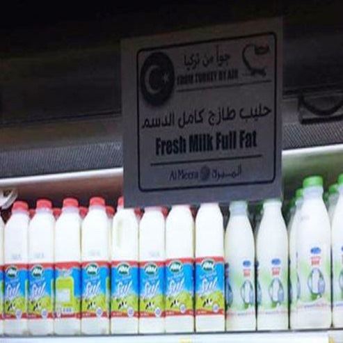 Al Meera marketler zincirinin sosyal medya hesabında yaptığı paylaşımda, "Al Meera olarak Türkiye'den gelen ürünlerin ulaştığını müşterilerimize duyuruyoruz. Müşterilerimizin günlük gıda ihtiyaçlarını karşılamak için süt, yoğurt, yumurta ve başka birçok ürün Türkiye'den geldi. bugün Al Meera marketlerinde ürünleri bulabilirsiniz. Gelişmeler için bizi takip edin." ifadelerine yer verildi.