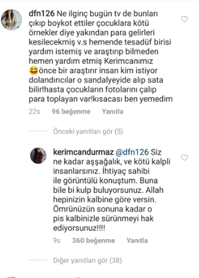 Ancak bir takipçisinin 'Hemen yardım etmiş Kerimcan'ımız. Ben yemedim' demesi üzerine Kerimcan Durmaz adeta ateş püskürdü.
