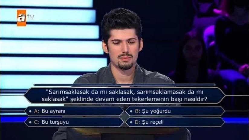 Yarışmacı Özgür Ege Aydoğan'ın Kim Milyoner Olmak İster programında "Sarımsaklasak da mı saklasak, sarımsaklamasak da mı saklasak?" şeklinde devam eden tekerlemenin başı nasıldır?"