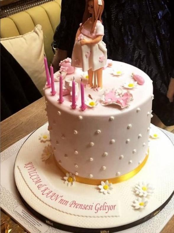 Üzerinde 'Kıvılcım & Kaan'ın prensesi geliyor' yazan pastaya bazı sosyal medya kullanıcıları 'rockçı Kaan'ı ne hallere soktunuz Kıvılcım Hanım pembe pastalar falan' yorumunda bulundu.