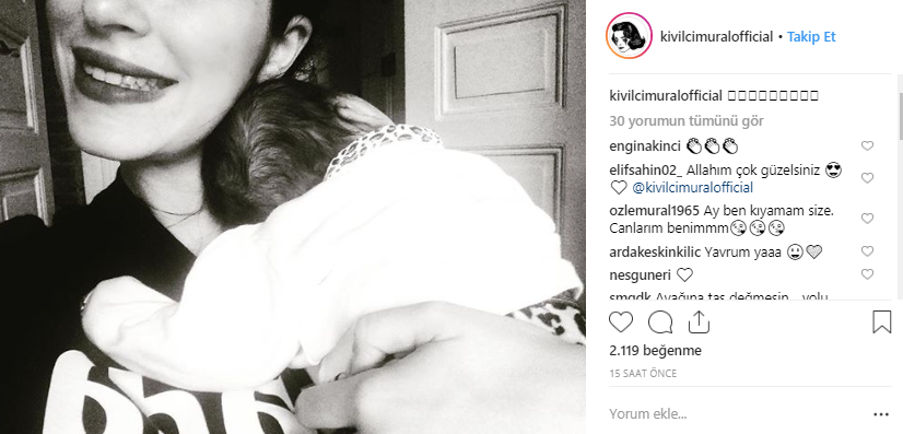 Kıvılcım Ural’ın kucağında kızıyla görüldüğü paylaşım, genç şarkıcının takipçilerinden çok sayıda beğeni ve yorum aldı. Bir süre önce kızlarını kucağına alan ünlü çift, bebeklerinin ismini henüz açıklamadı.