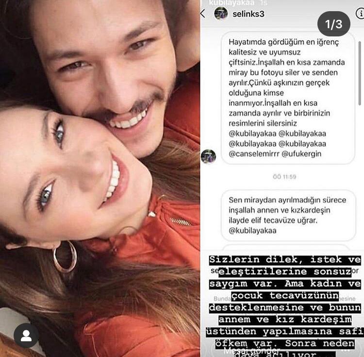 Kubilay Akalay bir takipcisinin “sevgilin Miray Daner ile ayrılmadığın sürece insallah annen ve kız kardeşin tecavüze uğrar” mesajına haklı olarak sinirlendi...