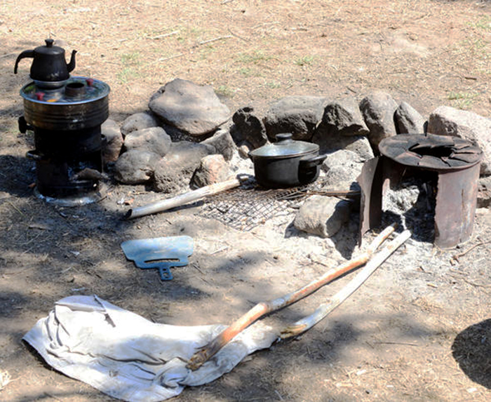 Leyla Bilginel, yemek yapmak için kamp ateşi yaktı. Ateşin yayılmaması için de etrafını taşlarla çevirdi.