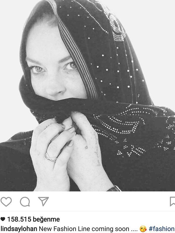 Şu an bir eşarp koleksiyonu hazırladığı konuşulan Lindsay Lohan, sosyal medya hesabından da, başına örttüğü örtü ile “Yeni moda koleksiyonu yolda” diyerek paylaşım yaptı. Muhtemelen başındaki örtü Lohan’ın yeni tasarımlarından biri.