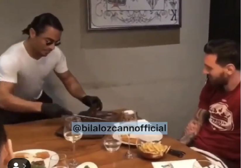 Sosyete kasabı Nusret Gökçe, önceki akşam Dubai Nusret’te yıldız futbolcu Lionel Messi’yi ağırladı. Gökçe, meşhur tuzlama hareketini bu sefer de Barcelona’nın dünya yıldızı futbolcusu Lionel Messi’ye yaptırdı.