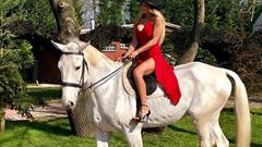 Topuklu ayakkabısıyla atın üzerine çıktı!