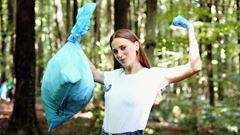 Serenay Sarıkaya çöp topladı