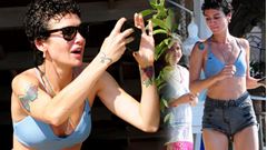 İkoncan Süreyya yine yaptı yapacağını. Topuklu bootie ile plaja indi