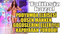 Podyumda yürürken elbisesi düştü