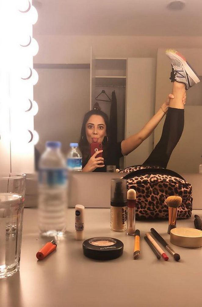 Merve Sevi'nin paylaştığı fotoğraflarda en öne çıkan pozu ise tek bacağını havaya kaldırarak çektiği kare oldu.