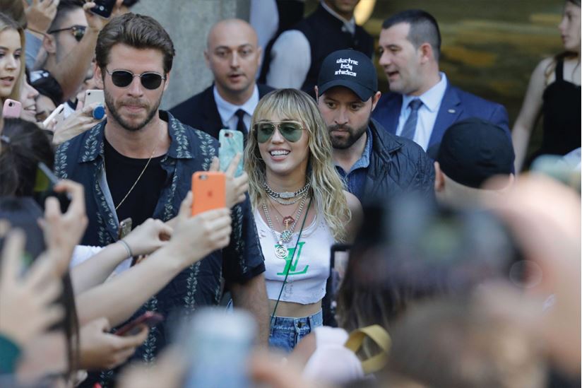 Olay yaşandığı sırada Miley Cyrus ve eşi Liam Hemsworth korumaların eşliğinde araçlarına doğru ilerliyordu.