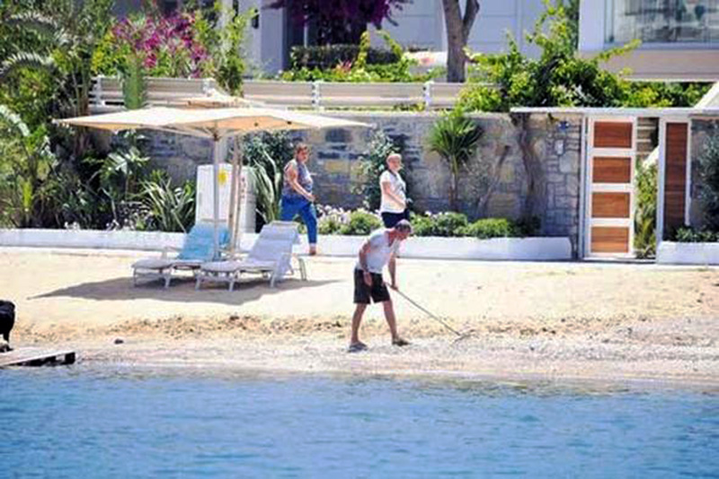 Bodrum Gündoğan'da bulunan evlerinde görüntülenen Başoğlu ile Hande Bermek'in tepkilerden korktukları için deniz kıyısındaki evlerinin bahçelerine duvar ördürdüğü gözden kaçmadı..