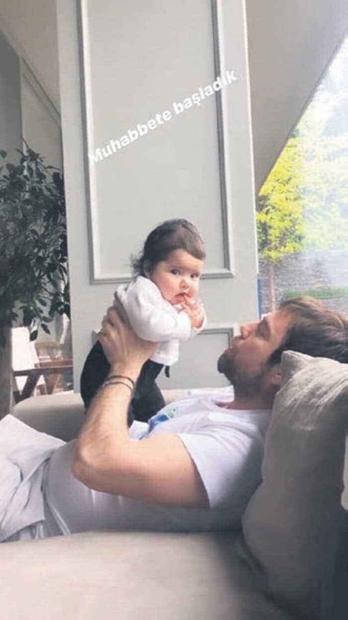 Oyuncu Hande Erçel ile bir dargın bir barışık aşk yaşayan Murat Dalkılıç, Gamze Erçel'in kızı Aylin Mavi ile bebek provası yaptı.