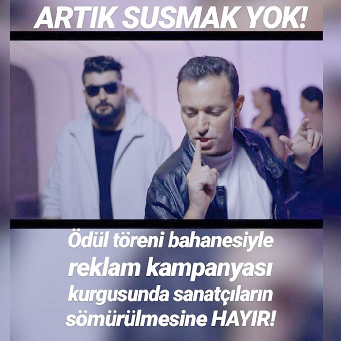 İsmimin ve markamın, bir başka markanın adının altında şahsımdan herhangi bir muvafakatname alınmadan geçmesini doğru bulmamaktayım. İlgili kurumlardan 3 kategorideki adaylığımı iptal etmelerini talep ediyorum. Buradaki hassasiyetimiz; her biri ayrı bir marka değeri olan sanatçıların izinsiz ve bedelsiz olarak ticari bir kuruluşun reklam kampanyasının içine sokulmasının etik olmamasıdır.