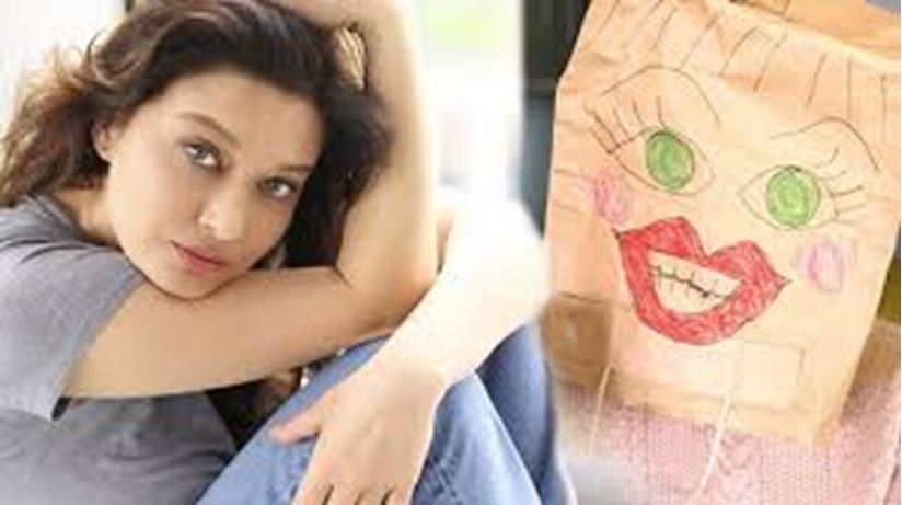 Oyuncu Nurgül Yeşilçay, kağıt poşetten komik maske yaptığı anları takipçileriyle paylaştı.