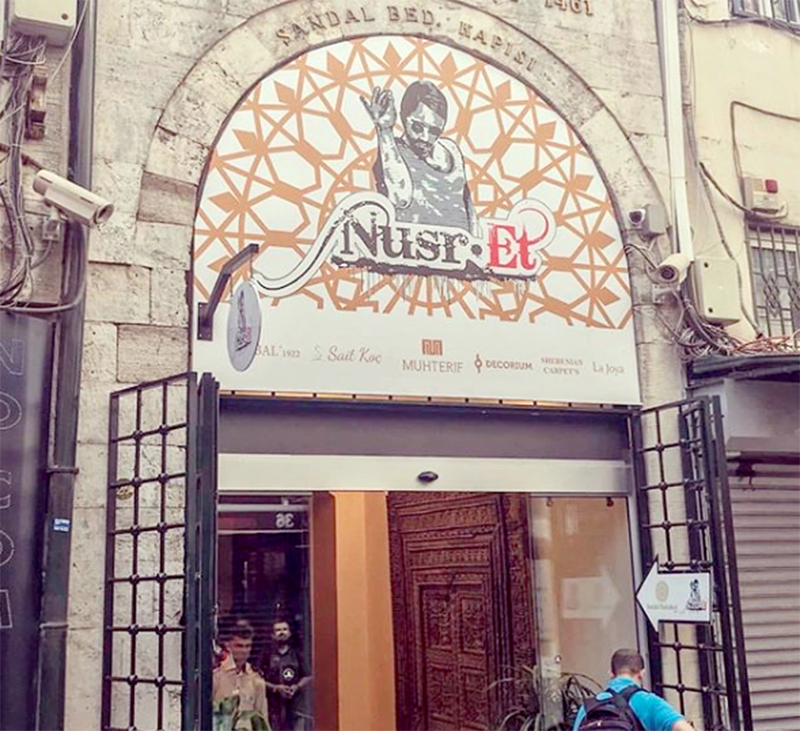 Dünyaca ünlü işletmeci Nusret Gökçe'nin Kapalıçarşı'nın kapısına astığı et lokantasına ait devasa tabelanın izinsiz olduğu ortaya çıktı. Tabelanın sökülmesi için belediye tebligat yaptı.