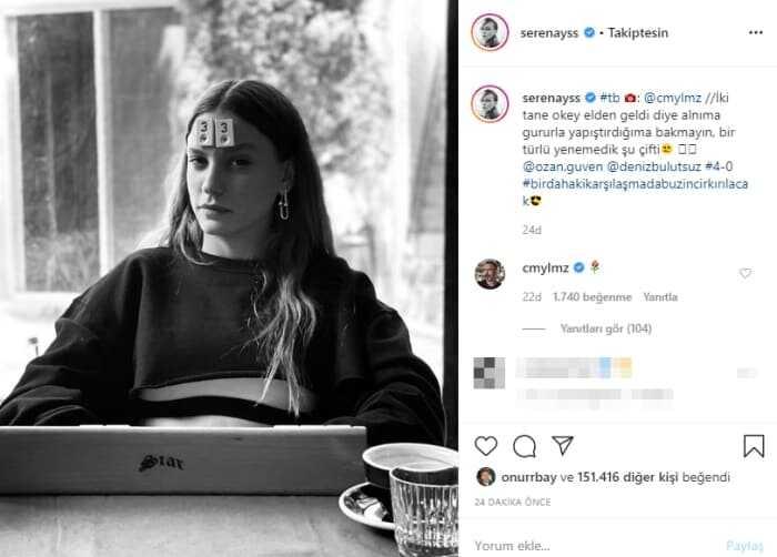 Şimdilerde karantinada sevgilisi Cem Yılmaz ile birlikte olan oyuncu Serenay Sarıkaya, sosyal medya hesabından yaptığı son paylaşımla dikkatleri üzerine çekti.