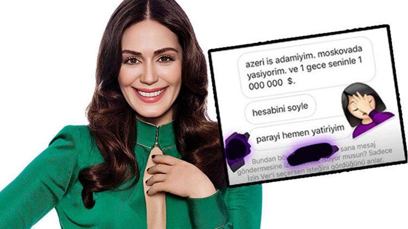 Kendisini Azeri iş adamı olarak tanıtan bir kullanıcı, Özge Borak’ın Instagram hesabına “Moskova’da yaşıyorum. Seninle 1 gece 1 milyon dolar… Hesabını söyle, parayı hemen yatırayım” şeklinde mesaj attı.