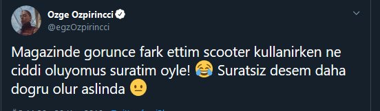 Özge Özpirinçci, ertesi gün hakkında çıkan haberler sonrasında suratının çok asık olduğunu fark edince Twitter hesabından esprili bir paylaşımda bulundu. Özpirinçci şunu yazdı: