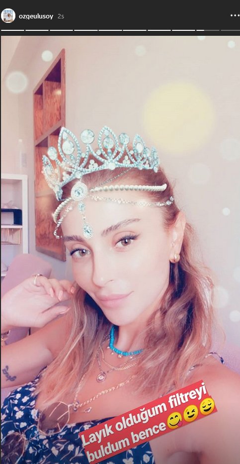 Geçtiğimiz günlerde birbirden eğlenceli çok sayıda filtreli fotoğraf paylaşan Ulusoy, bu defa kafasında bir taçla birlikte görüldüğü kareyi; “Layık olduğum filtreyi buldum bence” notuyla paylaştı.