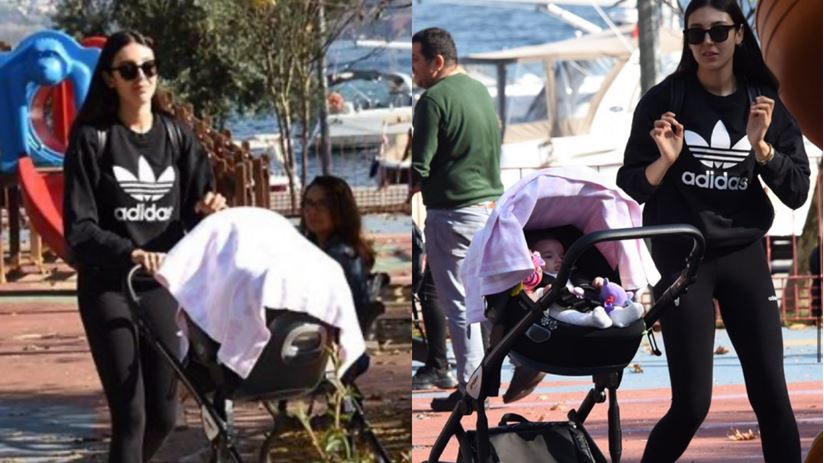 Çocukları ile birlikte zaman geçiren Ada Şahin, kendisini çeken muhabirleri görünce bakıcıya kızını aldırarak parktan çıktı.