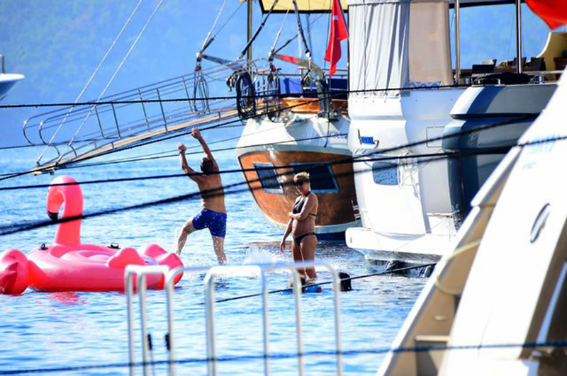 Kendilerine ait tekneyi Akvaryum Koyu’nda demirleyen Altuğ ile Atacan, tatillerinin ilk gününde adeta denizden çıkmak bilmedi.