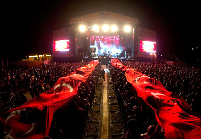 Önceki gün sahneye çıkan festivalin organizatörü Umut Kuzey, alanda 30 metrelik Türk bayrağı açarak Atatürk’ü andı. Ulu önderin “Yurtta Sulh Cihanda Sulh” sözünü hatırlataran Kuzey dakikalarca alkışlandı.
