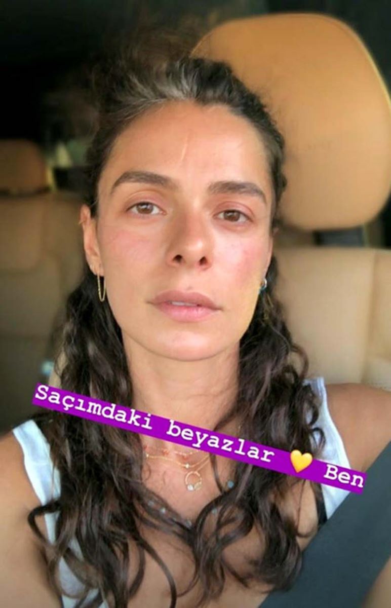 32 yaşındaki Özge Özpirinçci, Instagram hesabından bu fotoğrafını "Saçımdaki beyazlar ve ben" notuyla paylaştı.