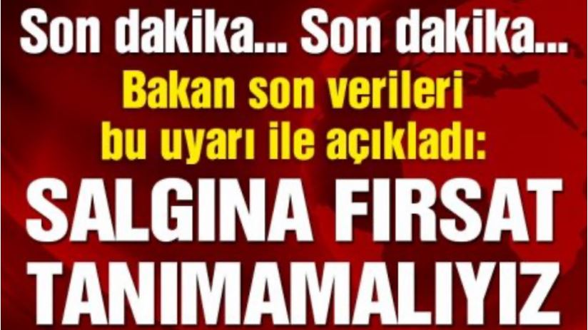 Sağlık Bakanı Fahrettin Koca, Türkiye'deki corona salgınında son 24 saatte tespit edilen yeni vakaları ve yaşanan can kayıplarını "Salgına fırsat tanımamalıyız" uyarısıyla duyurdu.