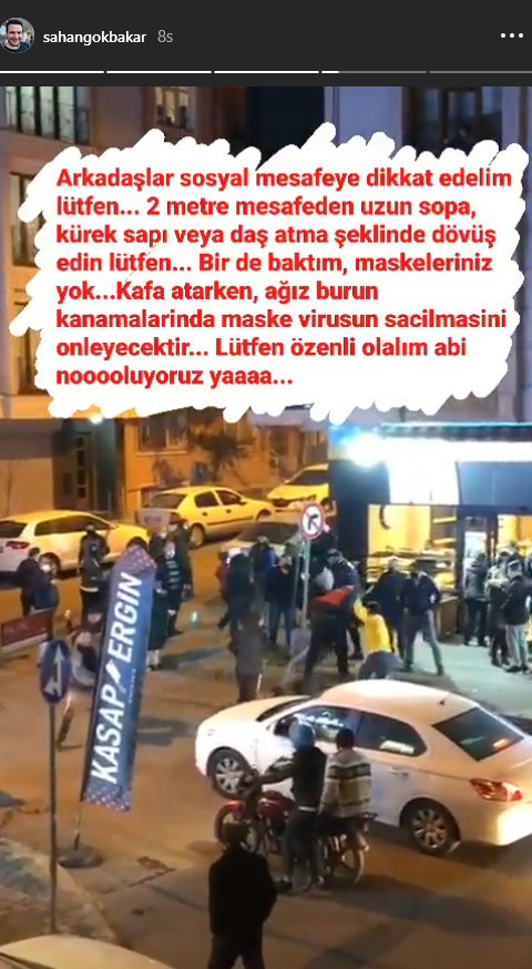 İstanbul’un pek çok yerinde yaşanan kavga ve kalabalık görüntülerini hesabından paylaşan Şahan Gökbakar görüntülerin üzerine düştüğü notlarla duygularını ifade etti: