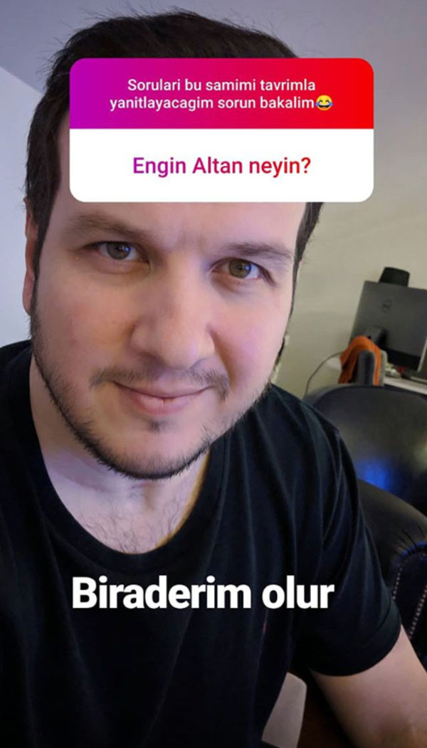 Son filmi Recep İvedik 6'nın hazırlıklarını tamamlayan Şahan Gökbakar, sosyal medyada takipçilerinin sorularına samimi yanıtlar verdi. Gökbakar'a son olarak ailece Avrupa tatiline çıktığı yakın arkadaşı Engin Altan Düzyatan ile ilgili soru da soruldu. Bir takipçisinin 'Engin Altan neyin?' sorusuna ünlü komedyen 'Biraderim' diye yanıt verdi.