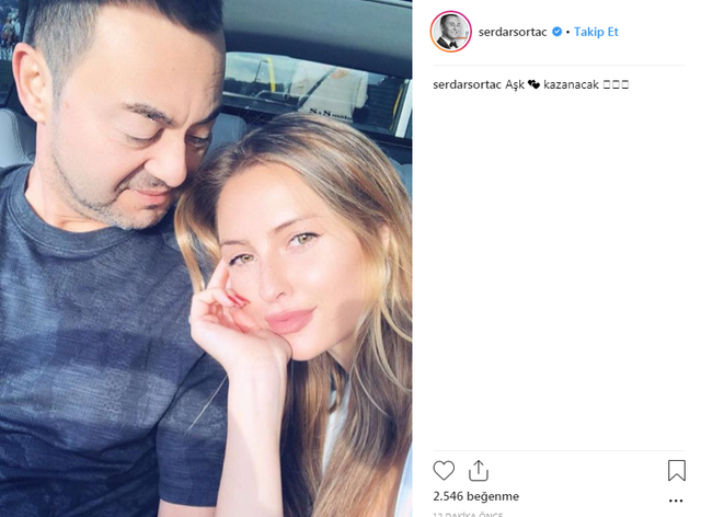 Serdar Ortaç, eşi Chloe Loughnan ile çekildiği romantik bir pozu Instagram hesabından 'aşk kazanacak' notuyla paylaştı
