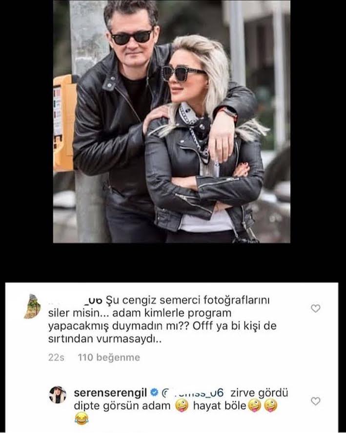 Semercioğlu, Seray Sever’in “Şu anda Seren Serengil instagram’da sana saydırıyor” yalnız sözleri üzerine şöyle konuştu: