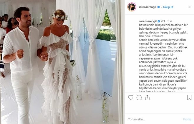 Seren Serengil ile Yaşar İpek, geçtiğimiz yıl nikah masasına oturmuş ve dünyaevine girmişti. Çift, geçtiğimiz günlerde küstü. Serengil, bunun ardından yaşanılanları Instagram’da paylaştığı bir mesajda anlattı. Eşinden özür dileyen Serengil, şunları yazdı: