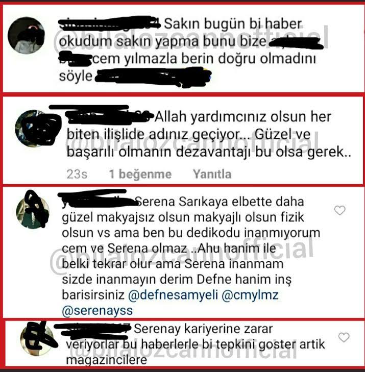 Serenay Sarıkaya'nın sosyal medya hesabında yapılan yorumlardan bazıları...
